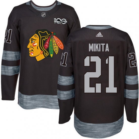 Men's Adidas Chicago Blackhawks #21 Stan Mikita Authentic Black 1917-2017 100th Anniversary NHL Jersey