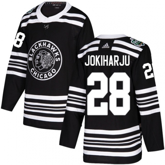 Men's Adidas Chicago Blackhawks #28 Henri Jokiharju Authentic Black 2019 Winter Classic NHL Jersey