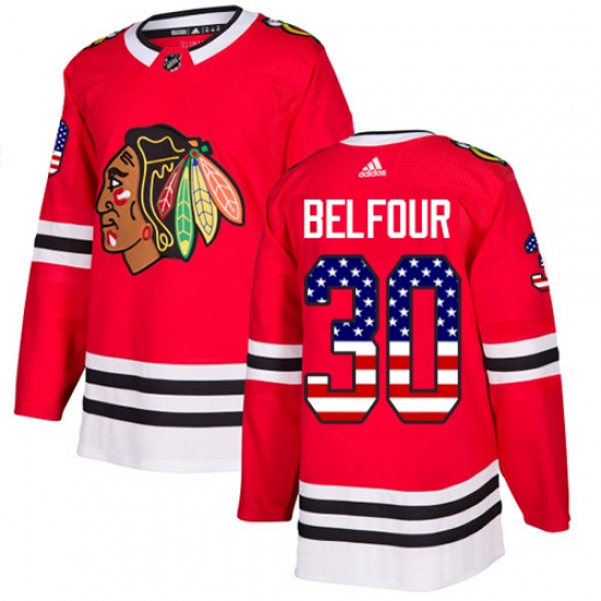 Home>NHL>Chicago Blackhawks>ED Belfour>Men's Adidas Chicago Blackhawks #30 ED Belfour Authentic Red USA Flag Fashion NHL Jersey