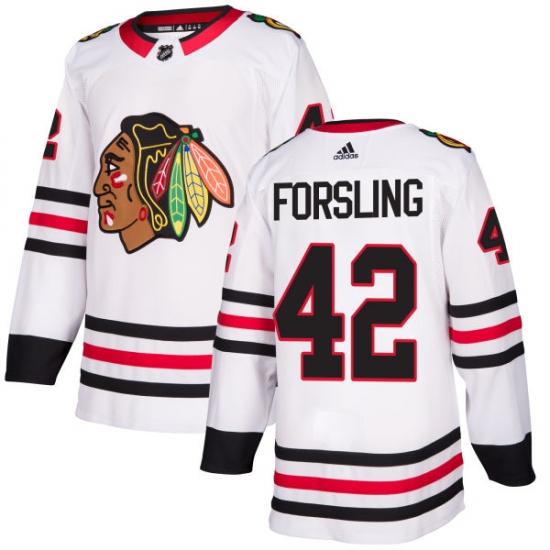 Home>NHL>Chicago Blackhawks>Gustav Forsling>Men's Adidas Chicago Blackhawks #42 Gustav Forsling Authentic White Away NHL Jersey