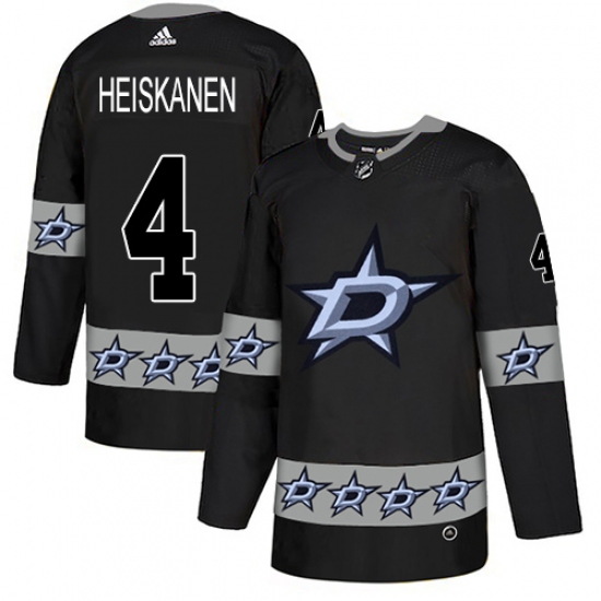 Men's Adidas Dallas Stars #4 Miro Heiskanen Authentic Black Team Logo Fashion NHL Jersey