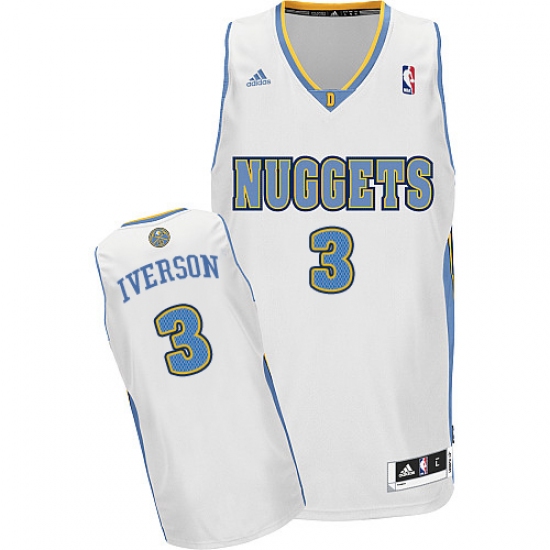 Men's Adidas Denver Nuggets #3 Allen Iverson Swingman White Home NBA Jersey