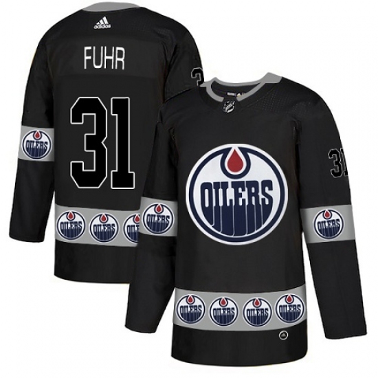 Men's Adidas Edmonton Oilers #31 Grant Fuhr Authentic Black Team Logo Fashion NHL Jersey