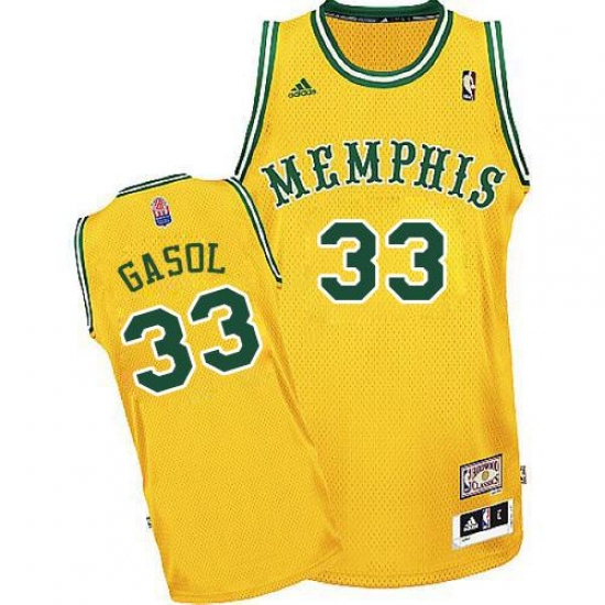 Men's Adidas Memphis Grizzlies #33 Marc Gasol Swingman Gold ABA Hardwood Classic NBA Jersey