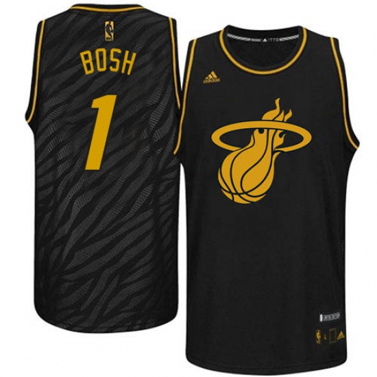 Men's Adidas Miami Heat #1 Chris Bosh Authentic Black Precious Metals Fashion NBA Jersey