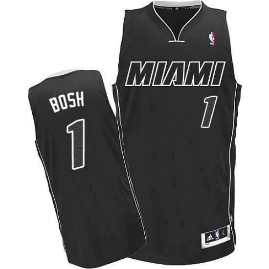 Men's Adidas Miami Heat #1 Chris Bosh Authentic Black/White NBA Jersey