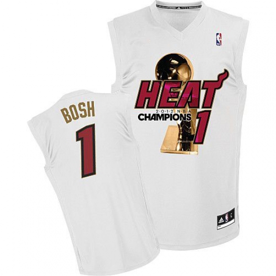 Men's Adidas Miami Heat #1 Chris Bosh Authentic White Finals Champions NBA Jersey