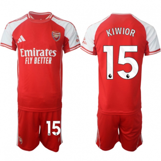 >Men's Arsenal F.C #15 Jakub Kiwior Red 2025 Home Soccer Jersey Suit