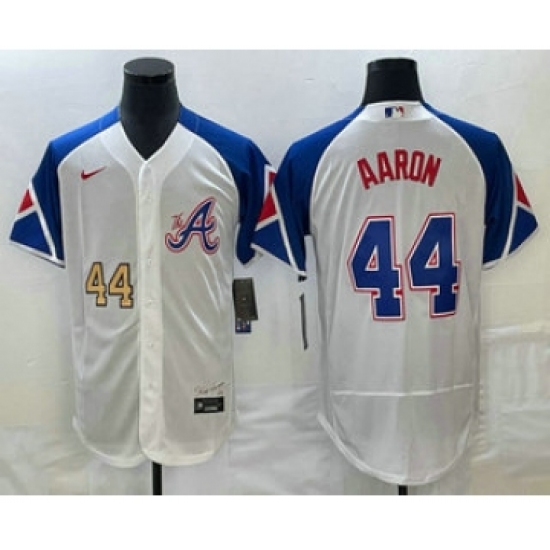 Men's Atlanta Braves #44 Hank Aaron White 2023 City Connect Flex Base Stitched Baseball Jersey