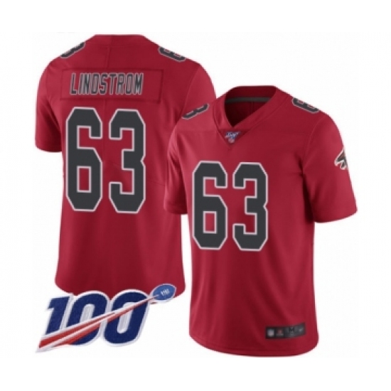 >Men's Atlanta Falcons #63 Chris Lindstrom Limited Red Rush Vapor Untouchable 100th Season Football Jersey