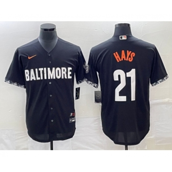 Men's Baltimore Orioles #21 Austin Hays Black 2023 City Connect Cool Base Stitched Jersey