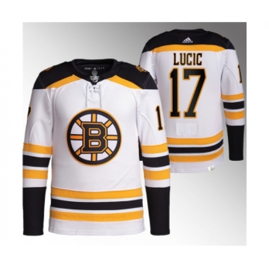 Men's Boston Bruins #17 Milan Lucic White Stitched Jersey