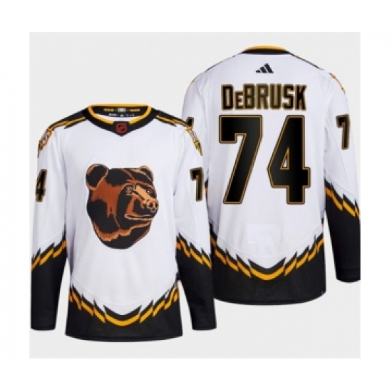 Men's Boston Bruins #74 Jake DeBrusk White 2022-23 Reverse Retro Stitched Jersey