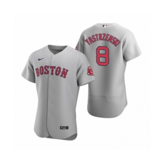 >Men's Boston Red Sox #8 Carl Yastrzemski Nike Gray Authentic Road Jersey