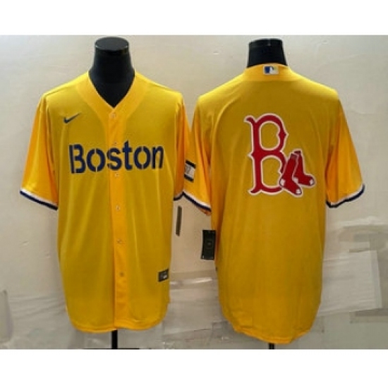 Men's Boston Red Sox Big Logo Gold 2021 City Connect Stitched MLB Cool Base Nike Jersey