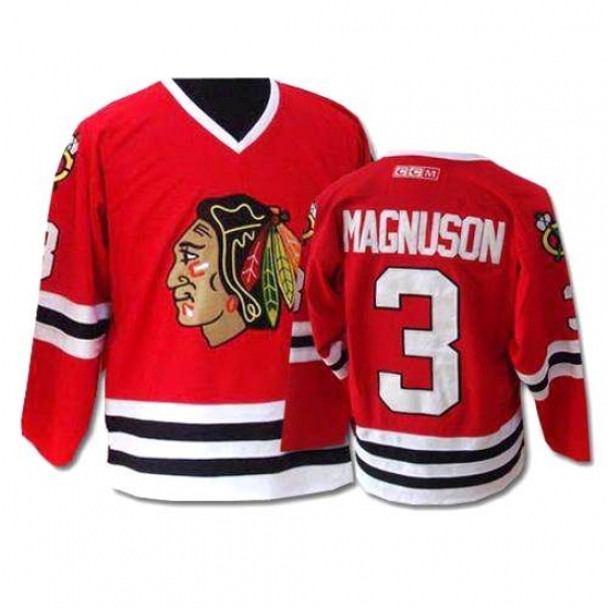 Men's CCM Chicago Blackhawks #3 Keith Magnuson Authentic Red Throwback NHL Jersey