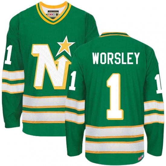 Men's CCM Dallas Stars #1 Gump Worsley Premier Green Throwback NHL Jersey
