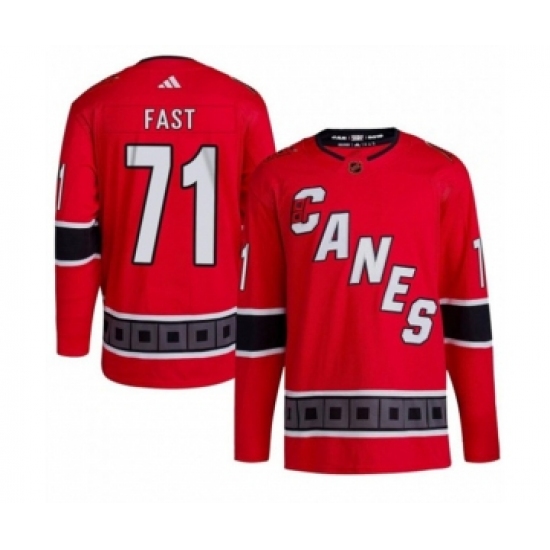 Men's Carolina Hurricanes #71 Jesper Fast 2022-23 Reverse Retro Red Stitched Jersey