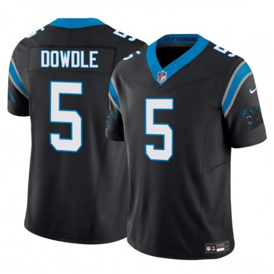 Men's Carolina Panthers #5 Rico Dowdle Black 2025 F.U.S.E. Vapor Limited Football Stitched Jersey