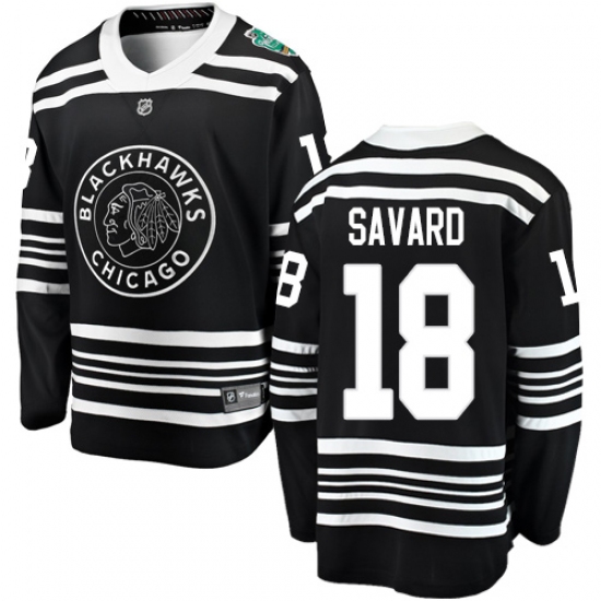 >Men's Chicago Blackhawks #18 Denis Savard Black 2019 Winter Classic Fanatics Branded Breakaway NHL Jersey