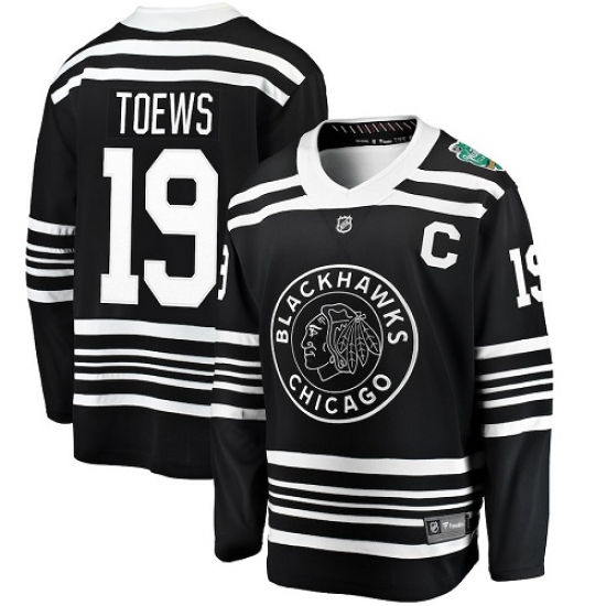 >Men's Chicago Blackhawks #19 Jonathan Toews Black 2019 Winter Classic Fanatics Branded Breakaway NHL Jersey