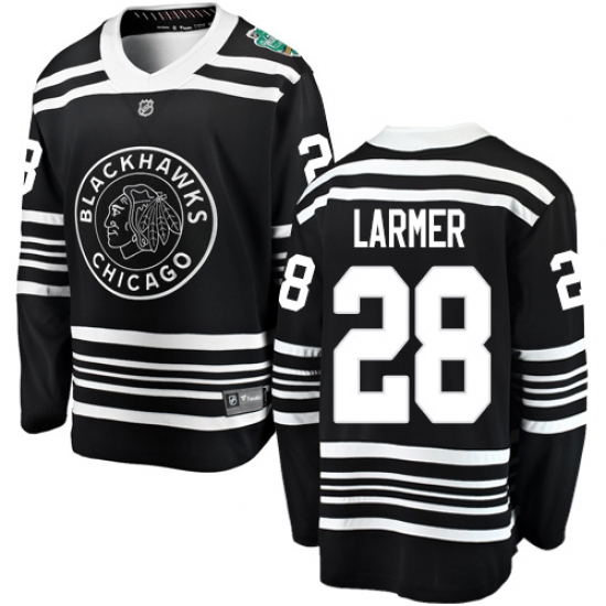 Men's Chicago Blackhawks #28 Steve Larmer Black 2019 Winter Classic Fanatics Branded Breakaway NHL Jersey