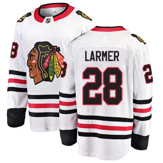 Men's Chicago Blackhawks #28 Steve Larmer Fanatics Branded White Away Breakaway NHL Jersey