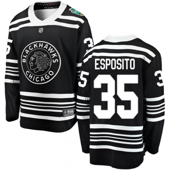 Men's Chicago Blackhawks #35 Tony Esposito Black 2019 Winter Classic Fanatics Branded Breakaway NHL Jersey