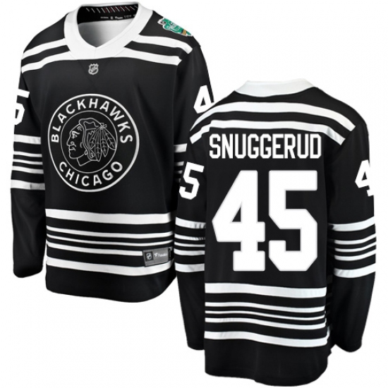 Men's Chicago Blackhawks #45 Luc Snuggerud Black 2019 Winter Classic Fanatics Branded Breakaway NHL Jersey