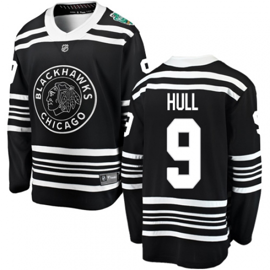 >Men's Chicago Blackhawks #9 Bobby Hull Black 2019 Winter Classic Fanatics Branded Breakaway NHL Jersey