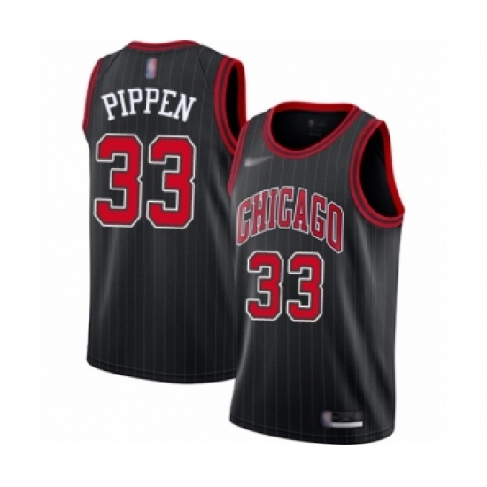 >Men's Chicago Bulls #33 Scottie Pippen Authentic Black Finished Basketball Jersey - Statement Edition