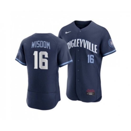 Men's Chicago Cubs #16 Patrick Wisdom 2021 Navy City Connect Stitched MLB Jersey