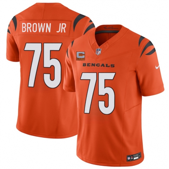 Men's Cincinnati Bengals #75 Orlando Brown Jr Orange 2025 F.U.S.E. With 2-Star C Vapor Untouchable Limited Stitched Football Jersey