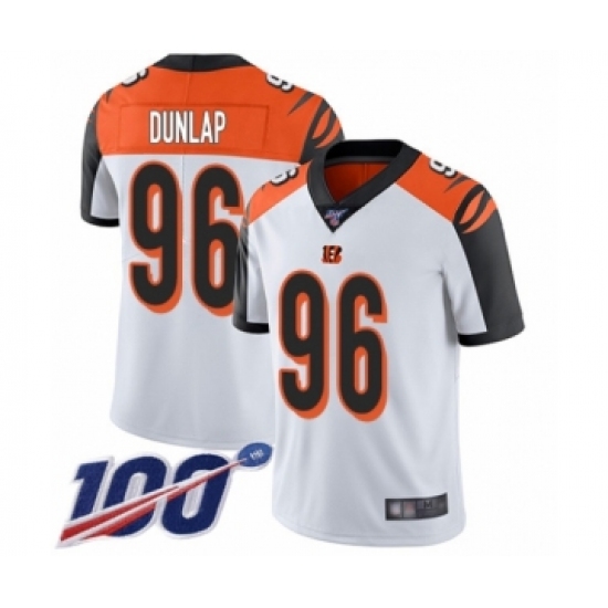 >Men's Cincinnati Bengals #96 Carlos Dunlap White Vapor Untouchable Limited Player 100th Season Football Jersey