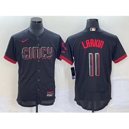 Men's Cincinnati Reds #11 Barry Larkin Black 2023 City Connect Flex Base Stitched Jersey
