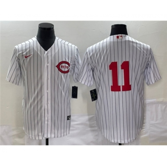>Men's Cincinnati Reds #11 Barry Larkin White Field of Dreams Stitched Baseball Jersey