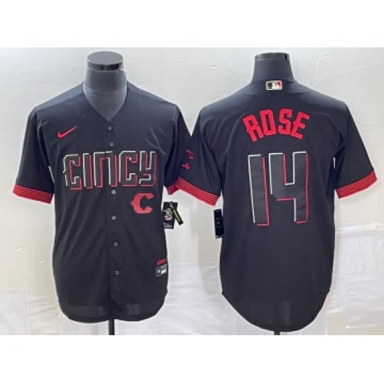 Men's Cincinnati Reds #14 Pete Rose Black 2023 City Connect Cool Base Stitched Jersey 1