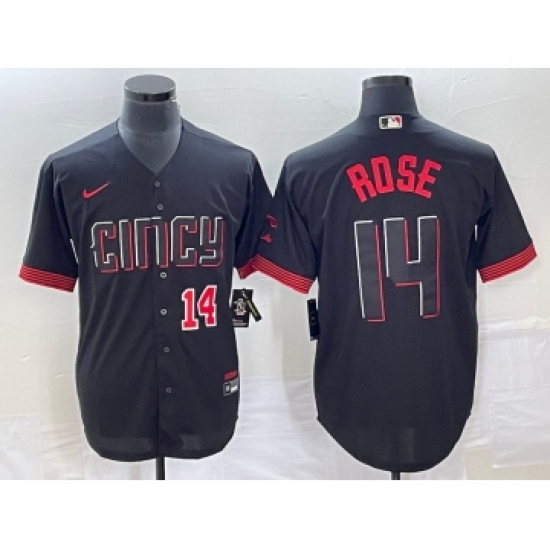 Men's Cincinnati Reds #14 Pete Rose Black 2023 City Connect Cool Base Stitched Jersey