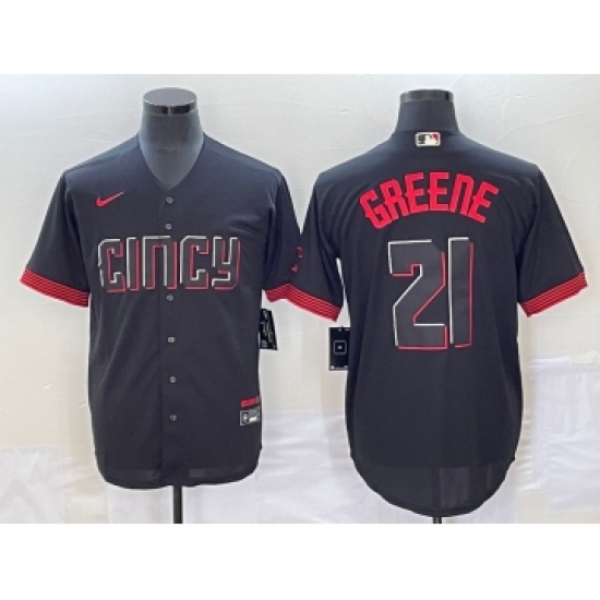 Men's Cincinnati Reds #21 Hunter Greene Black 2023 City Connect Cool Base Stitched Jersey1