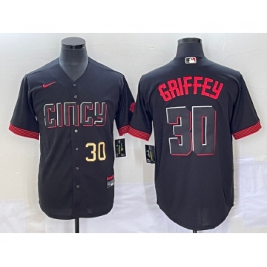Men's Cincinnati Reds #30 Ken Griffey Jr Number Black 2023 City Connect Cool Base Stitched Jersey