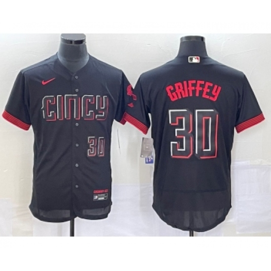 Men's Cincinnati Reds #30 Ken Griffey Jr Number Black 2023 City Connect Flex Base Stitched Jersey 2