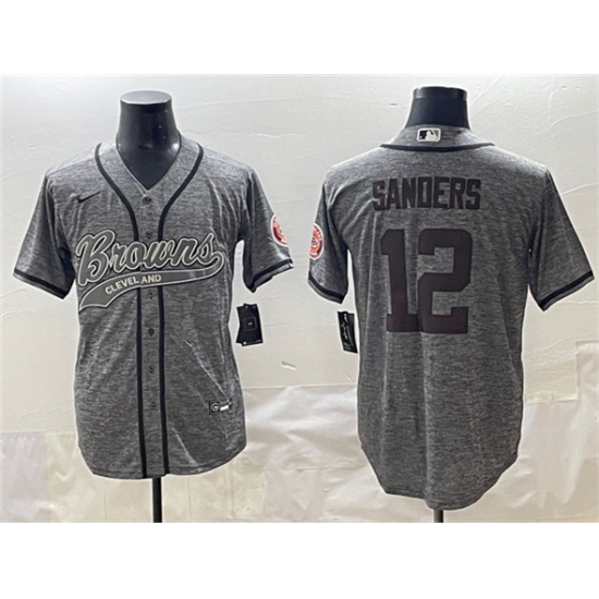>Men's Cleveland Browns #12 Shedeur Sanders Gray With Cool Base Stitched Baseball Jersey