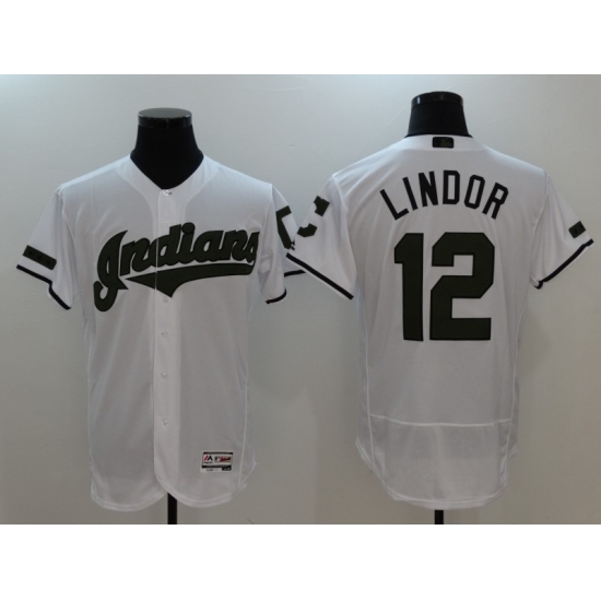 Men's Majestic Cleveland Indians #12 Francisco Lindor Authentic Green Salute to Service MLB Jersey