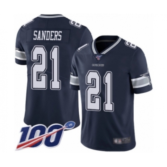 >Men's Dallas Cowboys #21 Deion Sanders Navy Blue Team Color Vapor Untouchable Limited Player 100th Season Football Jersey