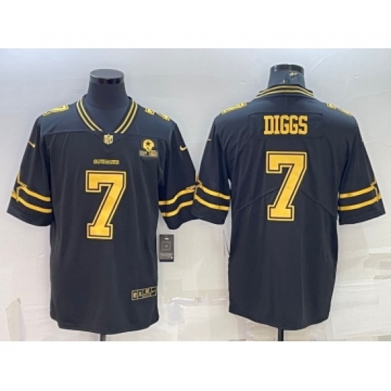 >Men's Dallas Cowboys #7 Trevon Diggs Black Gold Edition With 1960 Patch Limited Stitched Football Jersey
