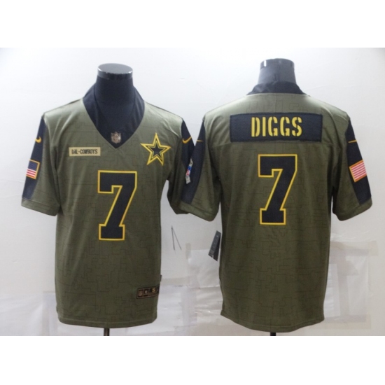 >Men's Dallas Cowboys #7 Trevon Diggs Olive Gold 2021 Salute To Service Limited Player Jersey