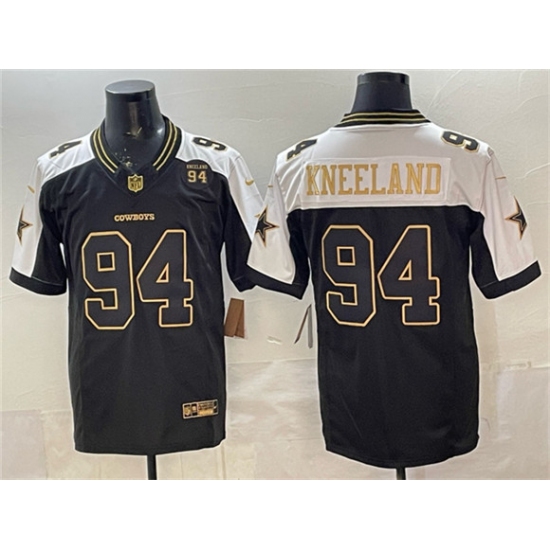 >Men's Dallas Cowboys #94 Marshawn Kneeland Black Gold 2025 F.U.S.E. 94 Marshawn Kneeland Memorial Vapor Limited Stitched Football Jersey