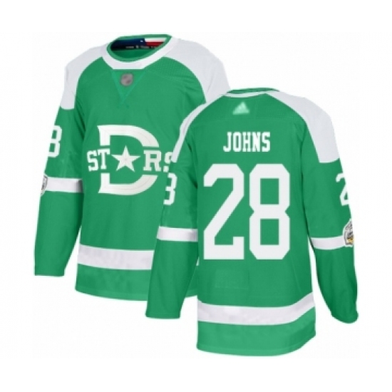 >Men's Dallas Stars #28 Stephen Johns Authentic Green 2020 Winter Classic Hockey Jersey