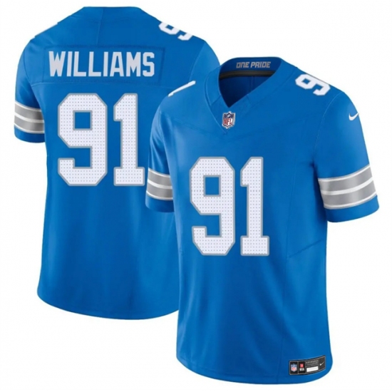 Men's Detroit Lions #91 Tyleik Williams Blue 2025 F.U.S.E. Vapor Limited Football Stitched Game Jersey