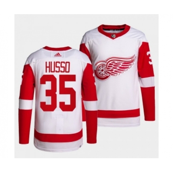 >Men's Detroit Red Wings Authentic Primegreen #35 Ville Husso White Away Jersey